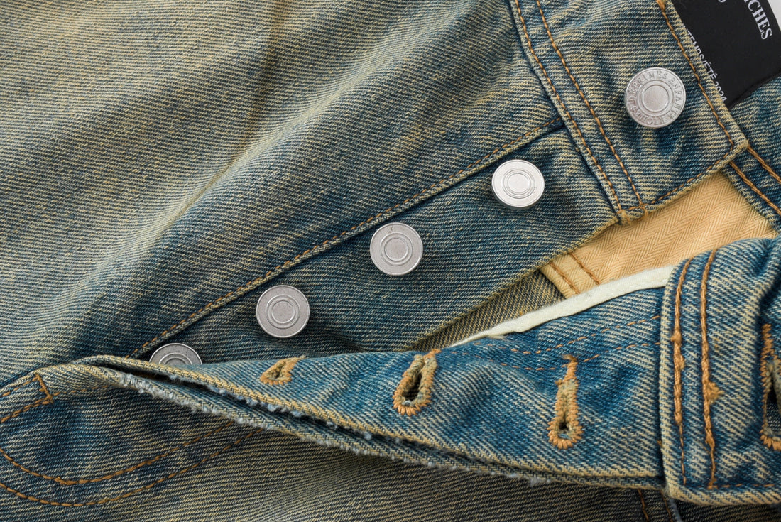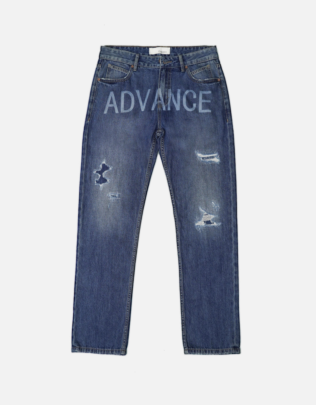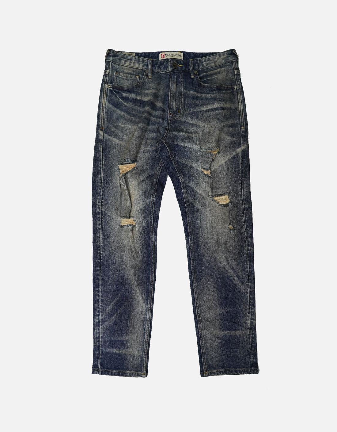 Destroyed Jeans Pants Light Distressed Wash Print Pattern Selvedge Denim