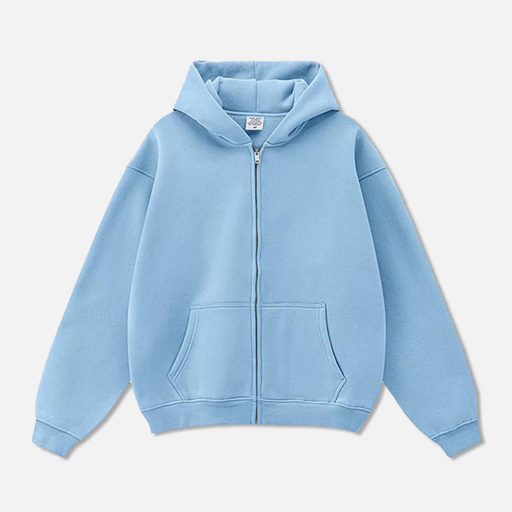 345G Loose Fleece Solid Color Zipper Hoodie Casual Pants Set