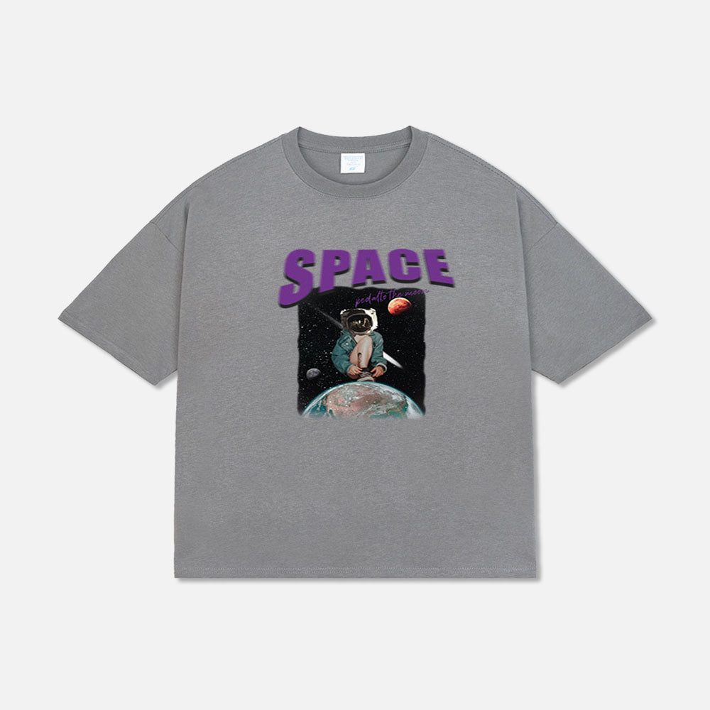 240G Fashion Trend Space Theme Printed Short Sleeve Loose Cotton Unisex T-Shirt
