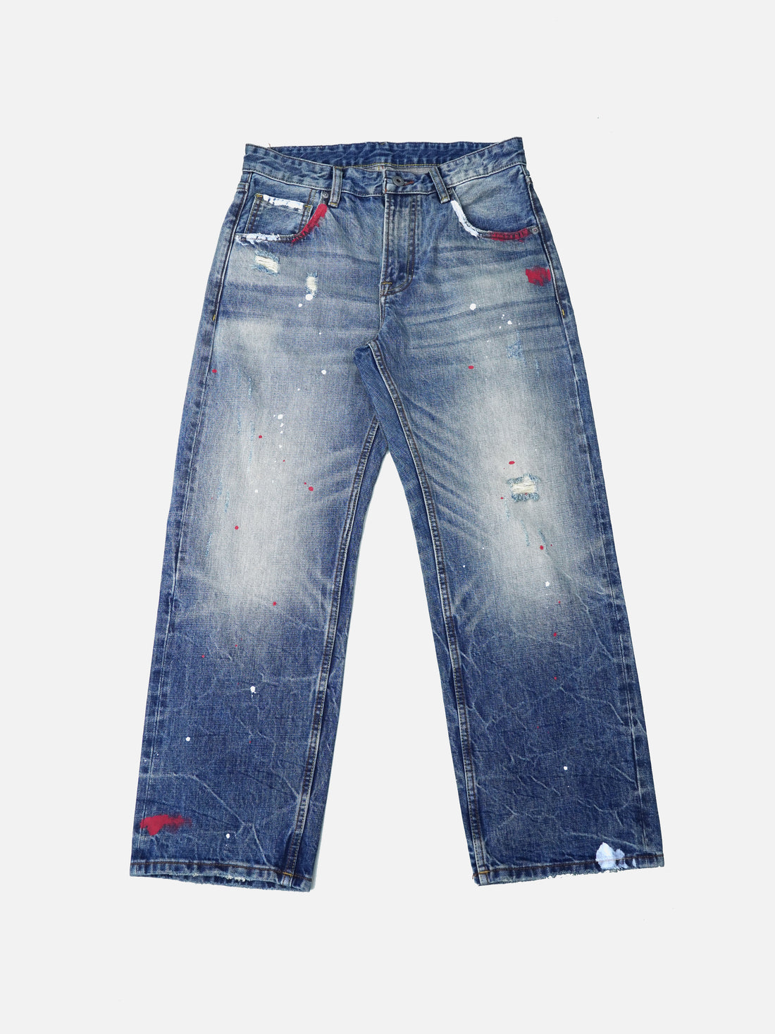 Ink-Splatter Washed Loose Straight Distressed Jeans