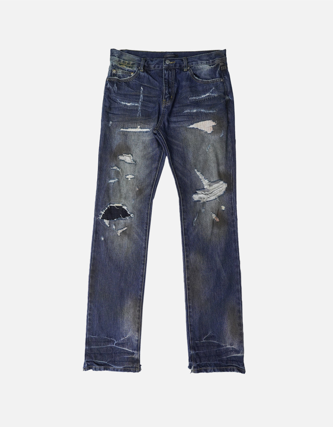 Distressed ripped jeans, crafted from classic blue denim. Washed to achieve a natural gradient hue....