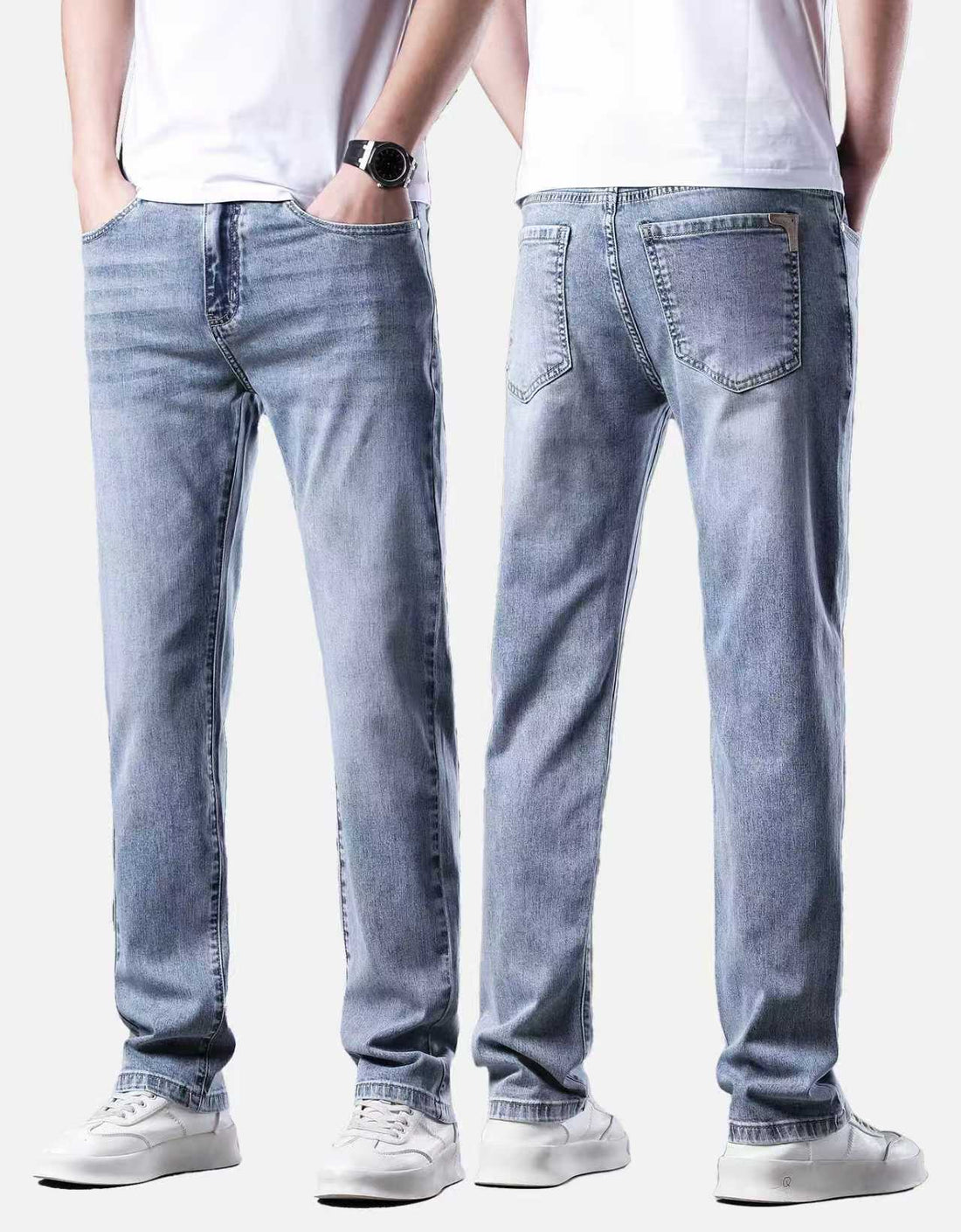 This pair of jeans uses dark blue denim as the base, full of retro charm....