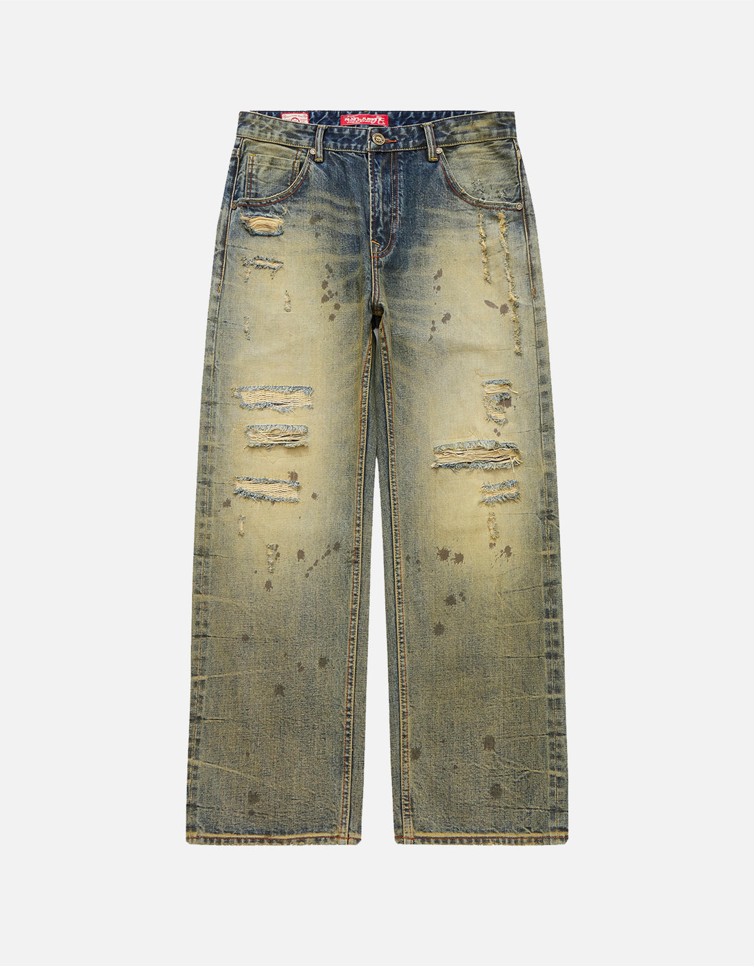 The pants feature extensive rust-like smudge treatments, which give the entire pair a uniquely striking...
