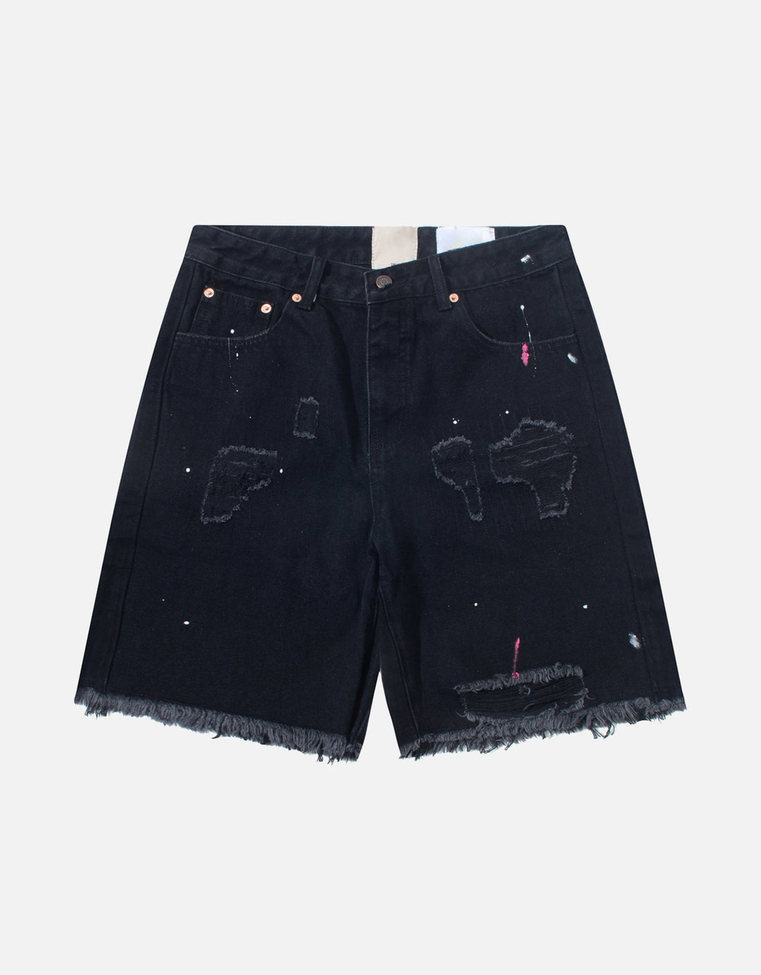 The pants are made of retro wash with special holes, and the red stray lines...