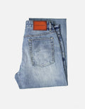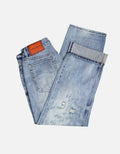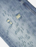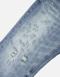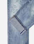 Destroyed Jeans Pants Light Distressed Wash Print Pattern Selvedge Denim