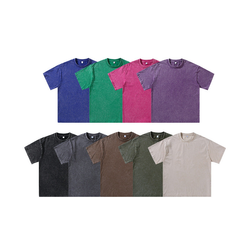 250G heavyweight washed small neckline cotton short sleeve t-shirt