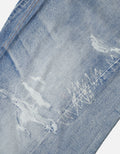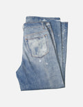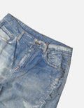 This pair of jeans uses 3D cold transfer printing technology to create a unique washed effect. The classic denim blue is paired with natural distressed white, presenting a retro misty texture. The loose silhouette incorporates workwear inspiration, featuring 3D pleats and frayed/stitch designs, with rich details. Enhanced by custom buttons and YKK zippers, it has a premium texture, fully showcasing a street - trendy style and infusing a personalized retro soul into the outfit.