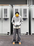 Dyed with imported Assut dyes in a YB smoke gray, the garments undergo an intricate washing process including color fading, distressing, and silicone softening, resulting in a natural, mist-like vintage patina with subtle whitening effects.