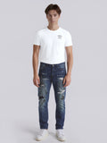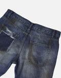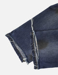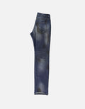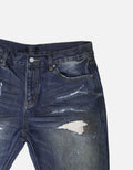 This jeans features a classic denim blue hue and achieves a retro texture through a distressed process. With multiple ripped and faded designs, it breaks the norm, creating a trendy and unrestrained style. Instead of random tearing, it is meticulously crafted to showcase a unique and fashionable vibe.