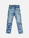 This is a pair of blue jeans featuring a laser - crafted pattern. The laser technique creates a camouflage - like design with varying shades of blue, giving the jeans a unique and modern look. The precision of the laser ensures that each pattern detail is sharp and clear, adding a touch of technological sophistication to the classic denim style. It's a perfect blend of traditional denim and contemporary laser artistry, making the jeans stand out with both casual comfort and a high - end, avant - garde vibe.