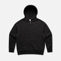Pullover hood, drop shoulder, kangaroo pocket, self-fabric lined hood, no drawcord, garment dyed, sleeve cuff ribbing